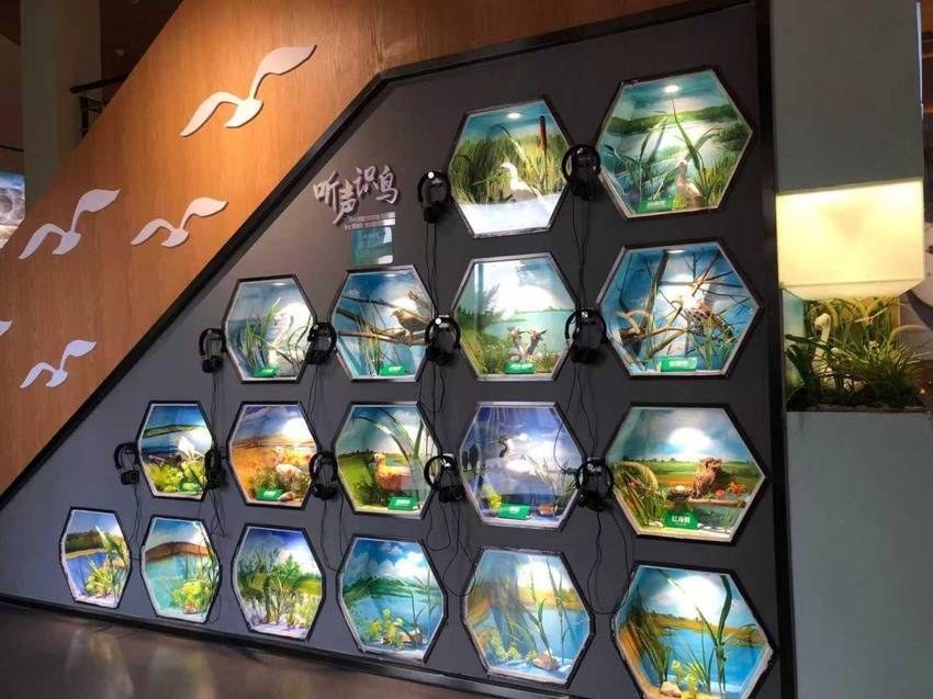 安山湿地科普馆:互动式自然教育体验在公园的入口处,有一个湿地科普馆,这里不像一般科普馆只展列标本、照片,只能满足游客走马观花式的、毫无参与感的体验,而是同时融入了多媒体技术,并利用视频、湿地全景展示系统等形式为载体,让游客可以通过互动式的体验学习到更多的科学知识。对于那些来了却没有机会一睹湿地公园珍稀动物真颜的游客来说,馆内专门设置的”听声识鸟”展厅,可以让游客身临其境般地去感受那些珍稀动物的鸣叫声,那种的立体式的沉浸感,非常适合带上孩子一起来体验一番。